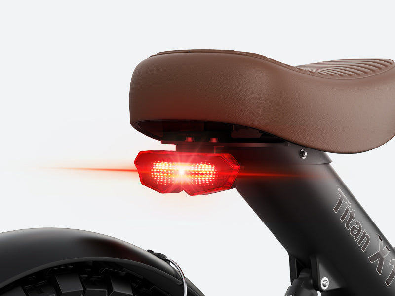 Yes. Titan X1 features a built-in LED taillight that automatically brightens when braking, enhancing nighttime safety.